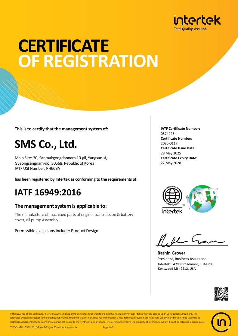 SMS의 제품과 서비스가 글로벌 기준을 충족하며, 고객에게 최상의 가치를 제공하는 데 기여하고 있습니다.